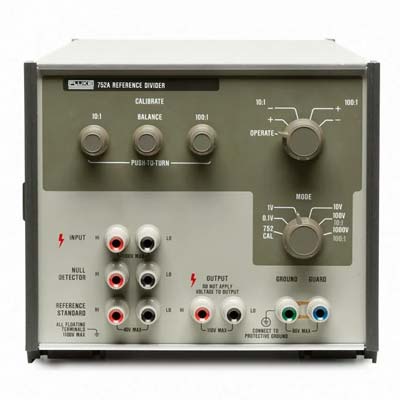 The 752A Reference Divider sets the standard for ratio accuracy and ease of use. It offers two divider outputs, 10:1 and 100:1 with output uncertainties of less than 0.2 ppm and 0.5 ppm respectively.
