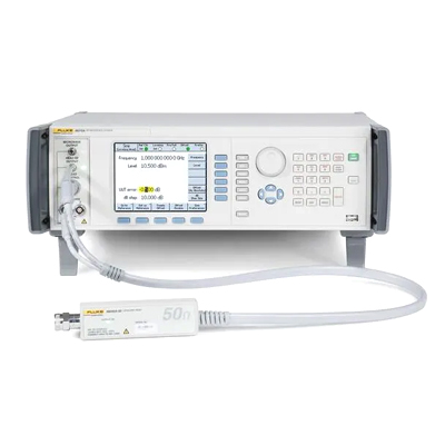 The 96270A/HF Reference Source includes a high frequency leveling kit comprised of a Rohde & Schwarz 40 GHz power sensor and Agilent 11667B splitter, plus a metrology-grade microwave cable and precision APC-3.5 millimeter adapter. This configuration, using the 96270A Microwave output, enables you to calibrate spectrum analyzers, power sensors and high frequency oscilloscope bandwidths in the 1 kHz to 27 GHz range. The power sensor and splitter provide the 96270A with fully automatic feedback that enables it to deliver precision, leveled, high purity signals, just as you set them on the 96270A front panel, at the splitter output port reference plane and UUT input connection.